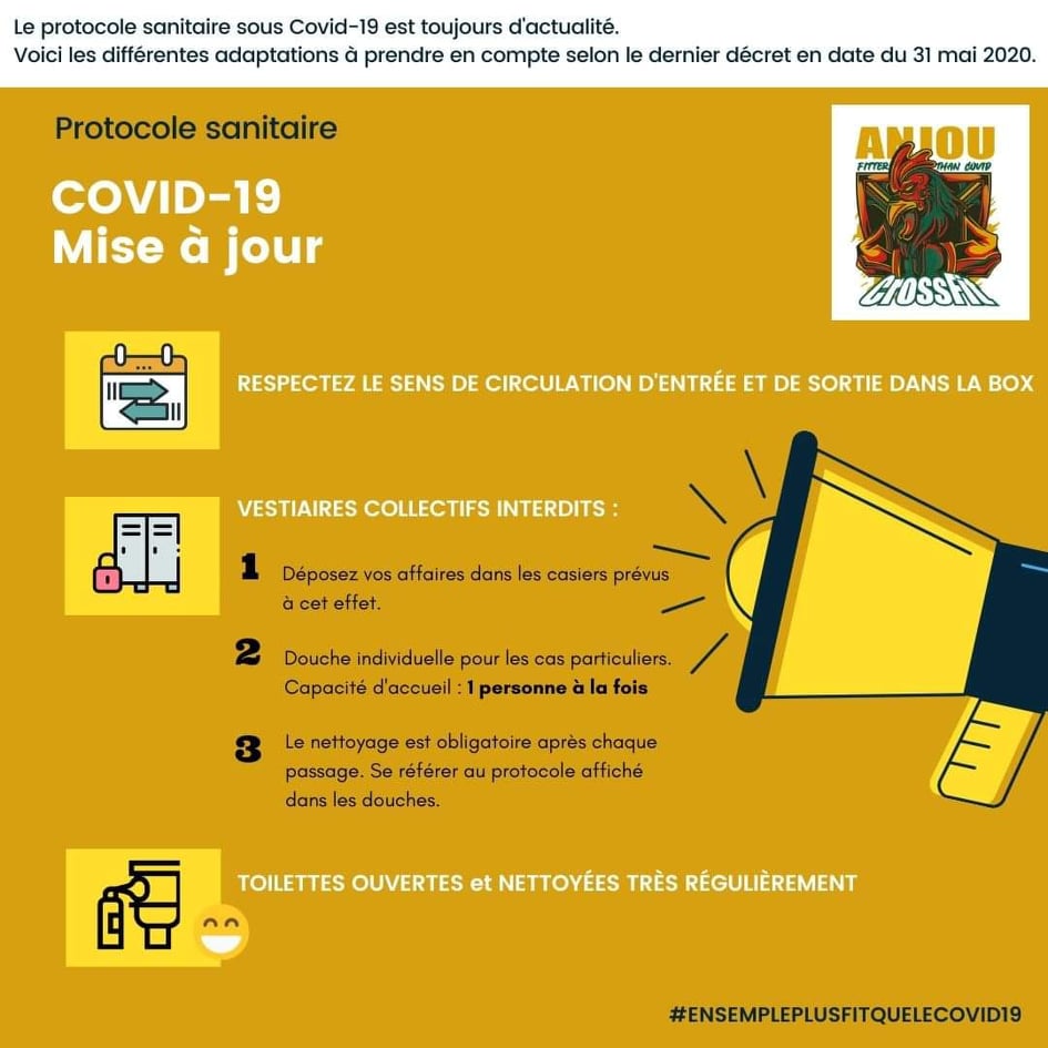 => Le protocole sanitaire déjà en place est mis à jour. Il sera affiché à la box et le staff vous aidera dans son application.
