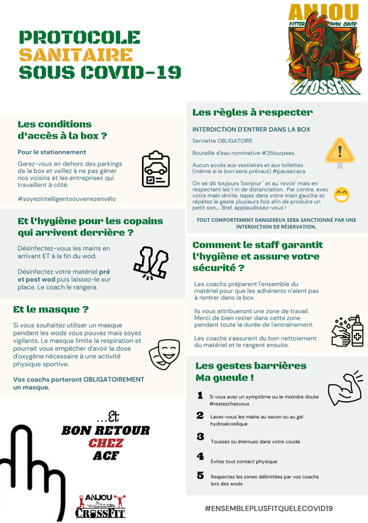 Anjou CrossFit ouvert de nouveau : Nous vous remercions de vous être adaptés à la situation en WODant dehors (on n’oublie pas d’où on vient). Vous êtes au top !